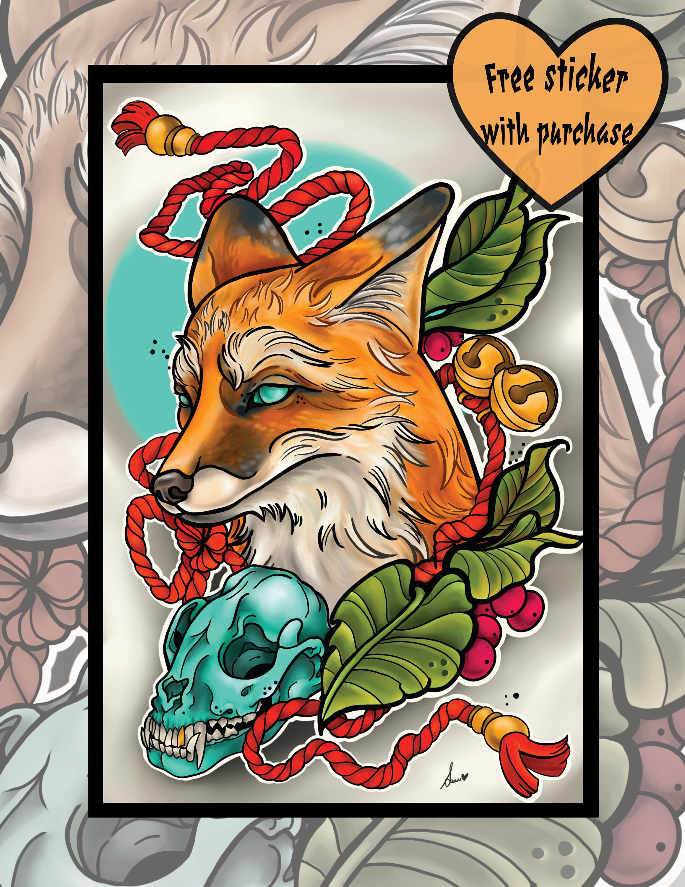 Neotraditional Fox Print Etsy